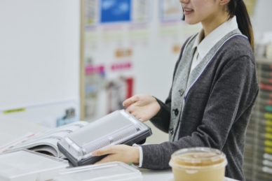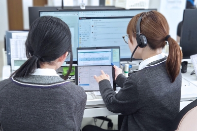 受注業務や伝票発行、見積書の作成、電話対応を行っています。また、オフィス併設の販売店舗の「SHOPミヤウチ」で接客業務もしています。お客様がお探しの商品のご提案や、買い物しやすいレイアウト作りを行っています。